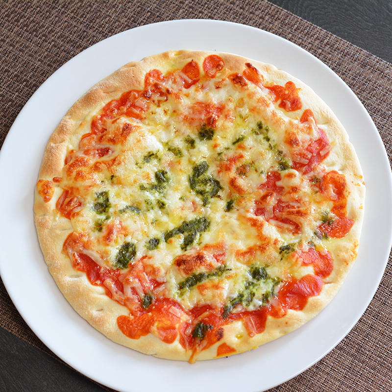 トマトソース、モッツァレラチーズ、バジルが香るクラシックなマルゲリータ。シンプルながら、素材の味を活かした一品です。